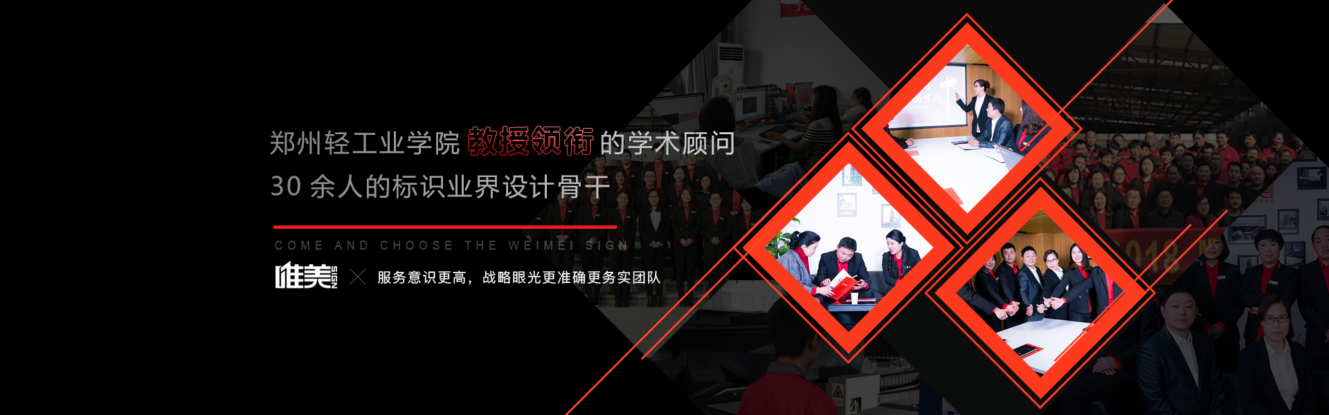 鄭州唯美標(biāo)識設(shè)計制作公司擁有21000平方現(xiàn)代化生產(chǎn)車間、多臺先進設(shè)備、100多名技工團隊、12位資深設(shè)計師團隊,嚴(yán)遵19道制作工序和6S管理體系,成功服務(wù)2800多個標(biāo)識項目,3...